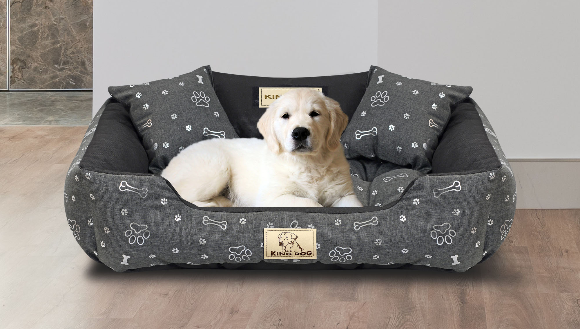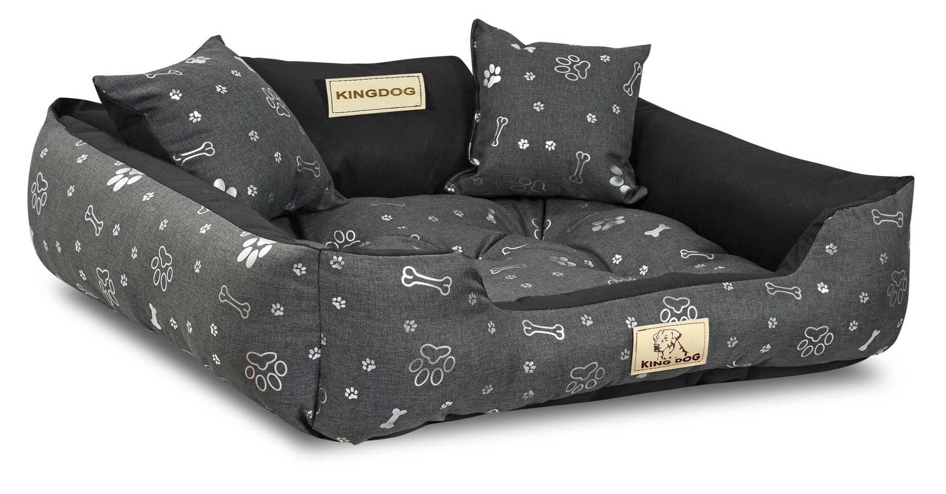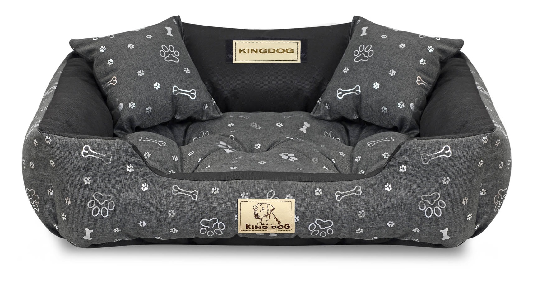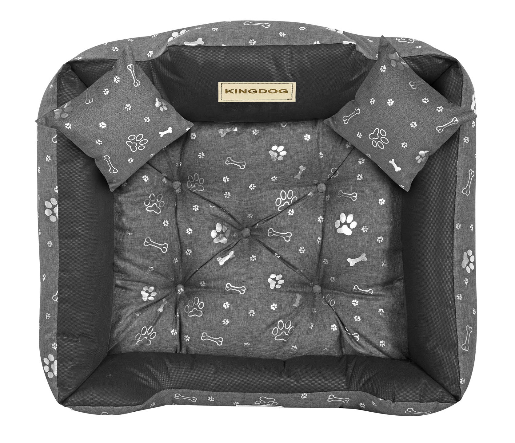 Wytrzymałe WODOODPORNE legowisko dla psa KINGDOG wzór KOŚCI SREBRNE, PERSONALIZOWANE imieniem pupila!